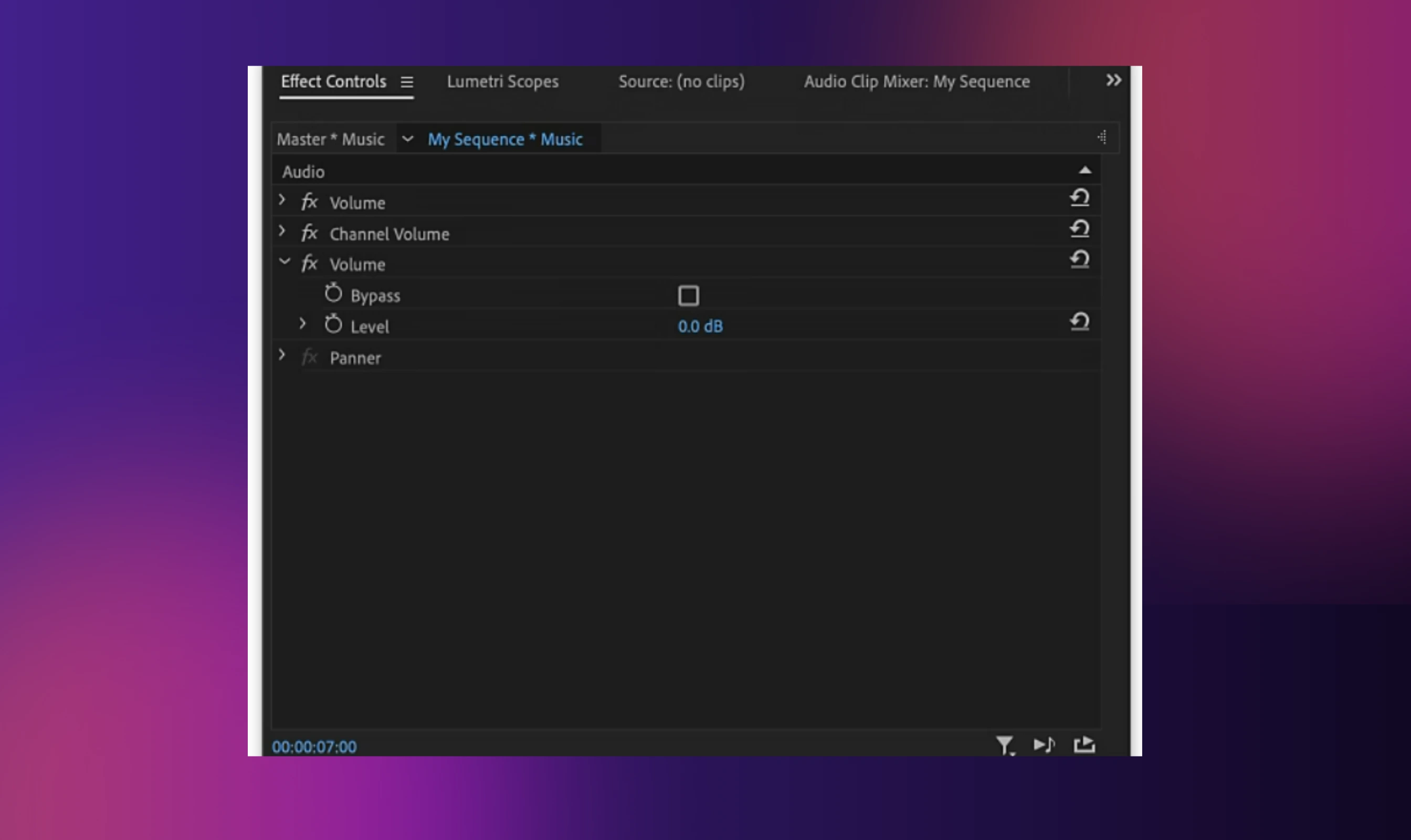 - Select your audio clip. Go to 'Effect Controls'.