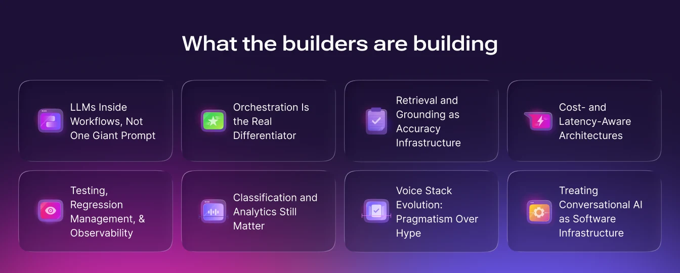 Organizations are increasingly structuring conversational AI as a core software system rather than a one-off project. Business operations teams define SOPs, policies, and escalation rules. Engineering and AI teams own orchestration, integrations, testing, and observability. Conversation designers focus on tone, trust, and sensitive flows. This clear ownership enables repeatable deployments and reduces dependence on heavy professional services.