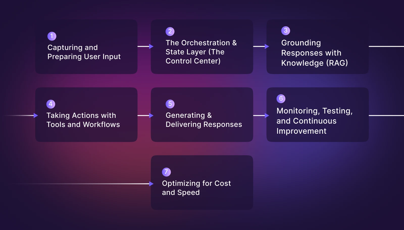 This includes how state is managed across turns, how tools are invoked, how fallbacks and escalation are handled, and how policies are enforced. Effective orchestration allows teams to reason about system behavior, measure outcomes, and ensure compliance even as models evolve.