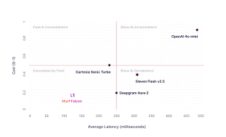 Text-to-speech models are typically one-dimensional. They either excel at voice quality, latency or cost. This works for content creation but voice agents demand optimal performance across all dimensions. That’s where Falcon soars.